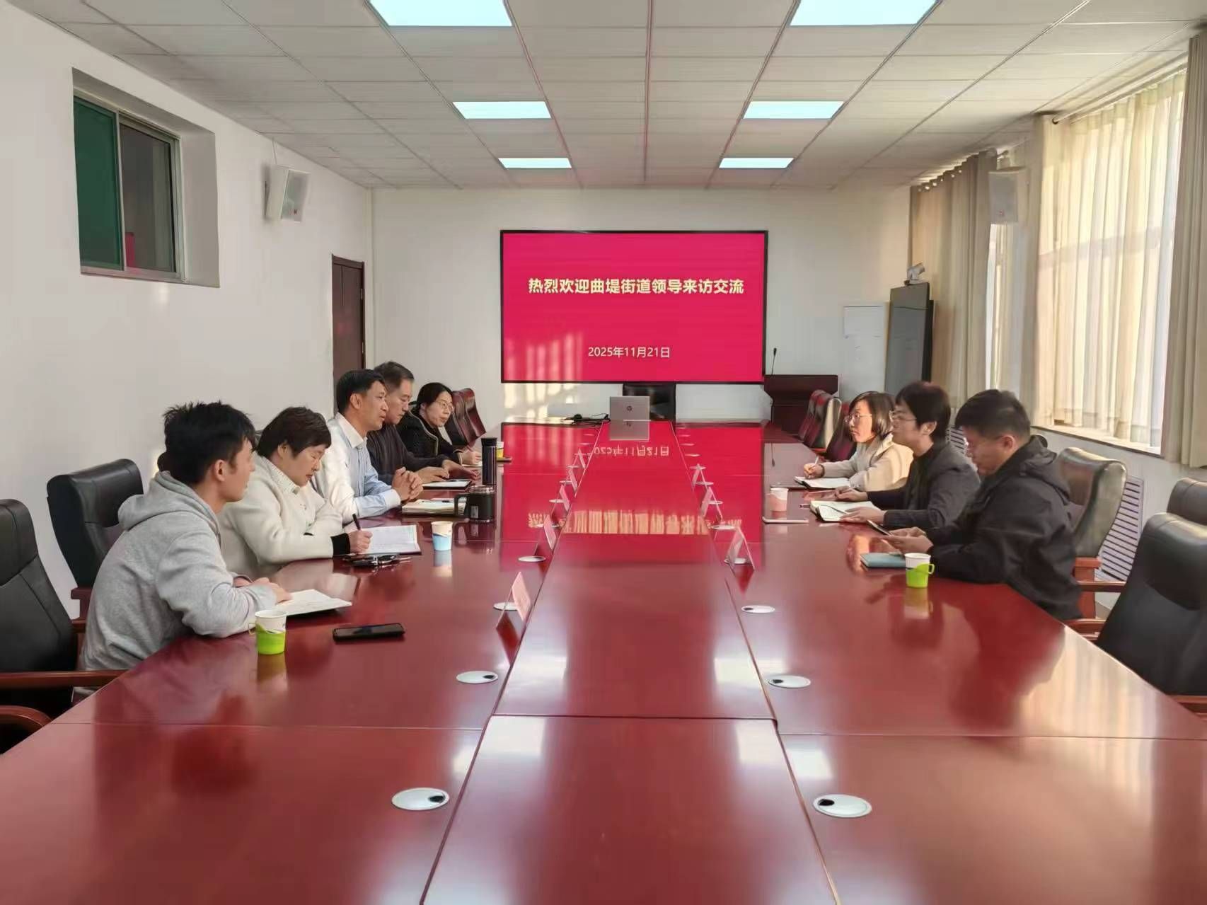 学院院长刘磊详细介绍了学院的办学历史、学科特色、师资力量、科研成果以及在校地合作、产教融合等方面取得的显著成效。他指出,学院近年来紧密围绕国家文旅融合发展战略,积极调整优化学科专业布局,大力加强应用型人才培养。他表示,曲堤街道文化底蕴丰厚,发展活力强劲,希望双方能够建立常态化交流机制,在文旅项目策划、乡村旅游提升等方面开展实质性合作,实现资源共享、优势互补、互利共赢。