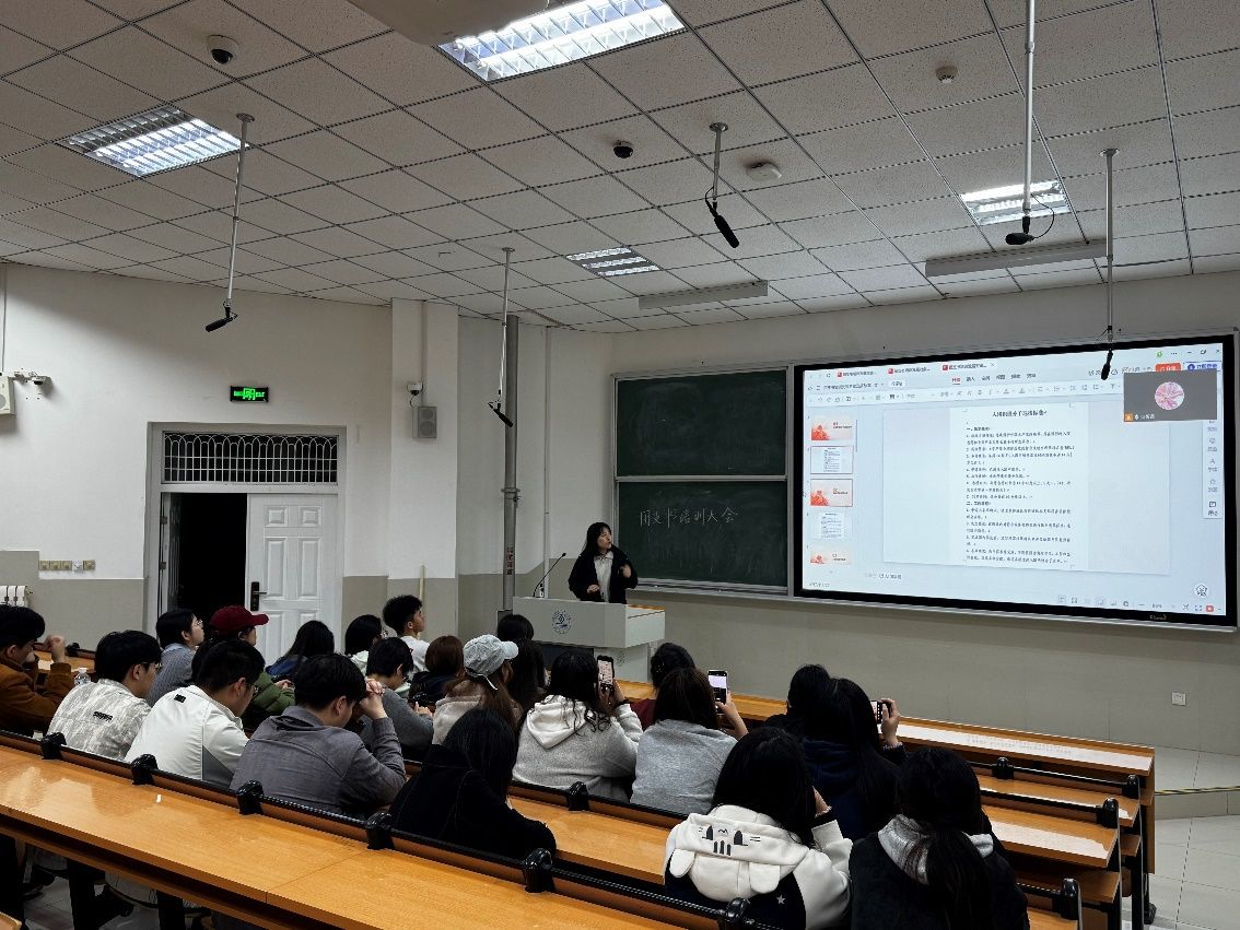 在舜耕校区D3J201开展了团支书培训大会,同时在外实习及主校区的同学以线上会议的形式参与本次会议。本次培训围绕入团积极分子选拔、志愿书规范填写、负面清单机制及“智慧团建”系统操作等核心内容展开,线上线下共计五十余人参与。