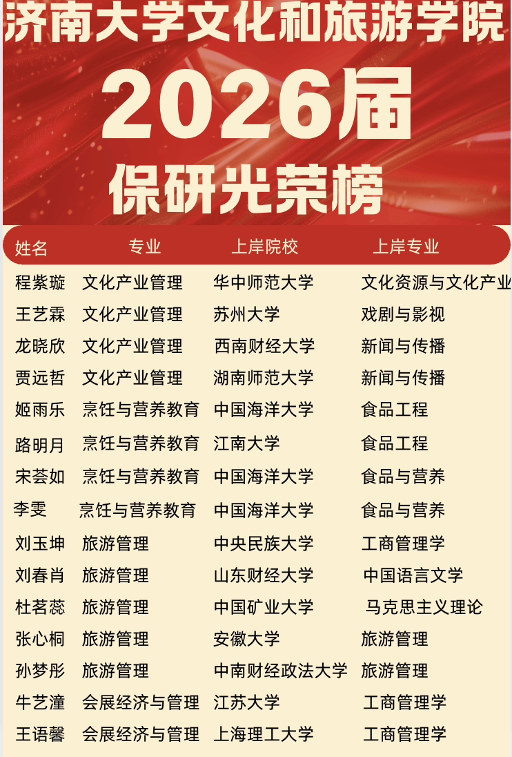 秋风送爽,捷报频传。色情视频 多位学子凭借优异表现,成功获得硕士推免资格,即将开启新的学术征程。 这份保研荣誉榜,是学子们奋斗的见证,更是学院育人成果的生动彰显,为学弟学妹们树立了奋进榜样,也激励着更多文旅学子逐梦前行!